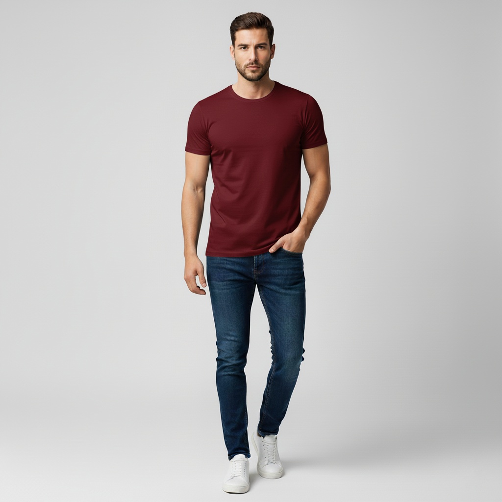 Crafted From 100% Cotton, This Round Neck T-Shirt Offers A Soft, Breathable Feel With A Relaxed Fit. Designed For Everyday Comfort, It Features A Clean Silhouette, Durable Stitching, And Easy Machine Wash Care — Perfect For Casual And All-Day Wear.